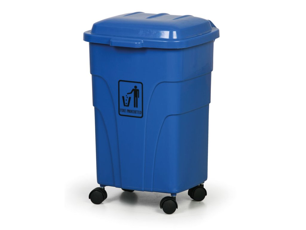 Plastový odpadkový koš na třídění odpadu, na kolečkách, 70 litrů, modrý