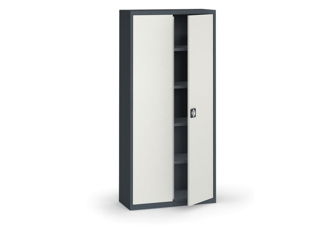 Plechová policová skříň na nářadí KOVONA, 1950 x 950 x 400 mm, 4 police, antracit/šedá