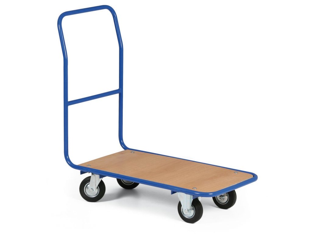 Lehký svařovaný plošinový vozík, který je vhodný k přepravě menších balíku či jiného drobnějšího nákladu. Výhodou je jeho nízká hmotnost a snadná manipulace. Ložná plocha je vyrobena z laminované dřevotřísky se vzorem světlý buk. Kola jsou plnopryžová s jehlovými ložisky, díky čemuž je zaručen jeho tichý chod. Dvě pevná a dvě otočná kola podle vlastní osy jsou o průměru 125 mm. Obruče kol jsou na výběr z černé nebo šedé nešpinivé pryže. Jedno otočné kolo je vybaveno brzdou pro zabezpečení proti nežádoucímu rozjetí vozíku.