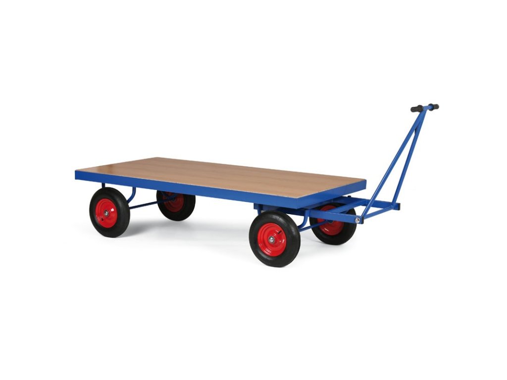 Plošinový vůz s ojí bez bočnic, 1000x2000 mm, 600 kg, dušová kola