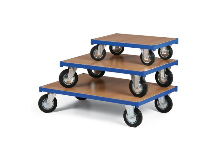 Multifunkční přepravní vozíky umožňující sestavení variant dle přání zákazníka pouhým zasunutím požadované nástavby a zajištění šroubem. Speciální uložení madel zajišťuje vždy pevné spojení madla s platformou vozíku a nedovoluje tak uvolnění (vyviklání) madla v jeho uložení po celou životnost vozíku. Ložná plocha je svařena z ocelových profilů, konstrukční řešení zaručuje nejlepší stabilitu i při vysokých zatíženích. Kovové části jsou lakovány práškovým lakem RAL 5005. Ložná plocha a dřevěné výplně jsou vyrobeny z laminované dřevotřísky se vzorem světlý buk. Boční a přední dřevěné výplně jsou olemovány modrou ABS hranou o šířce 1 mm, volitelně lze doplnit o kovový ochranný "U" profil.