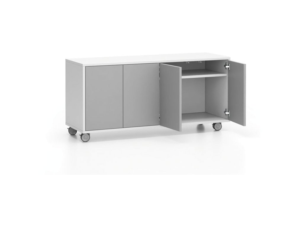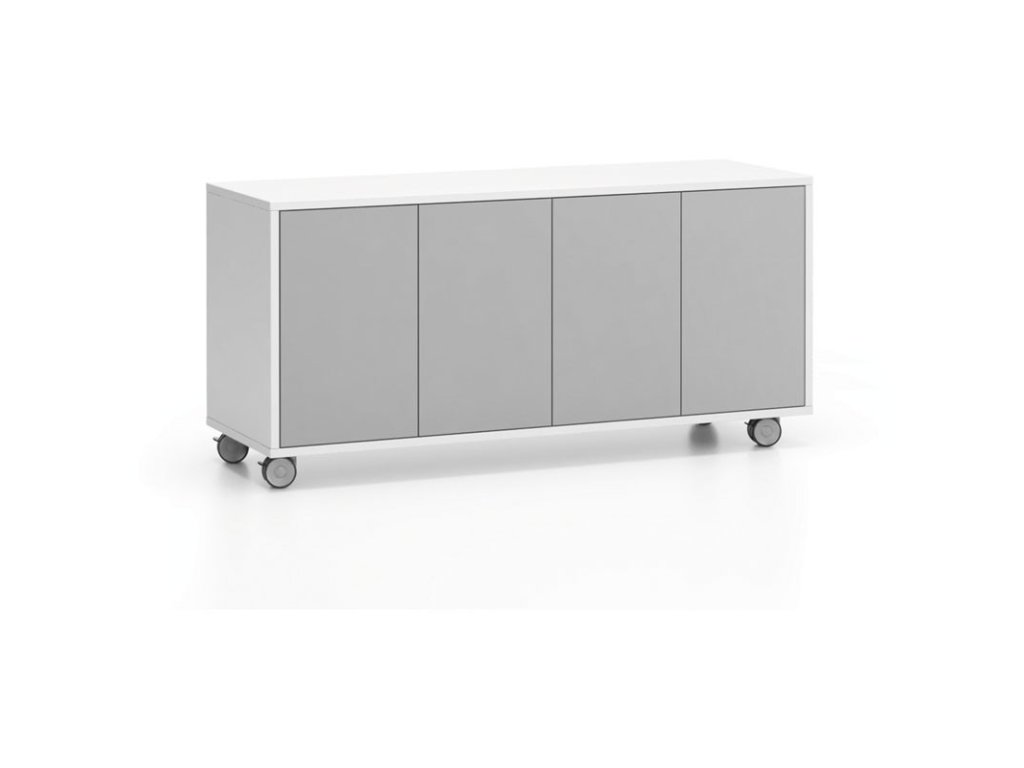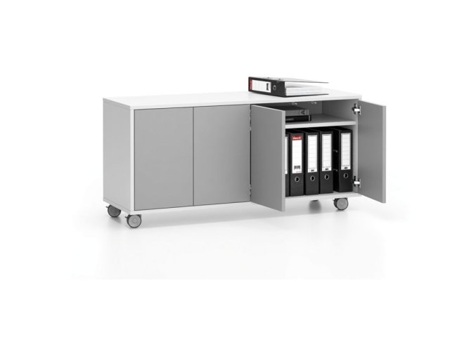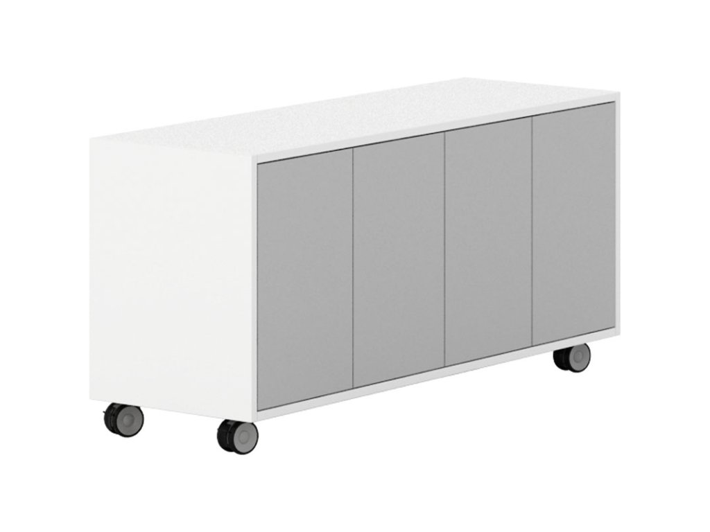 Pojízdná skříňka na kolečkách s dveřmi LAYERS, dlouhá, 1200 x 400 x 575 mm, bílá / šedá