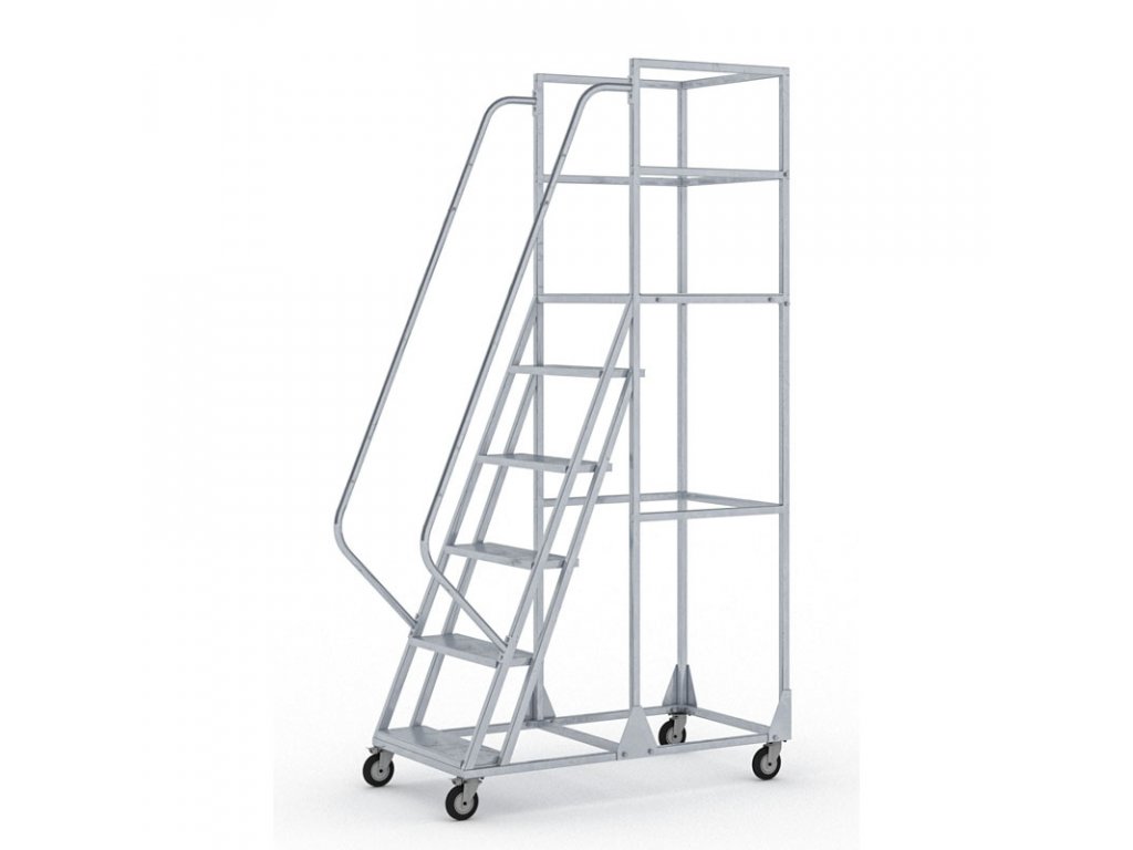 Pojízdný ocelový žebřík s plošinou, 6 příček, výška plošiny 1,5 m