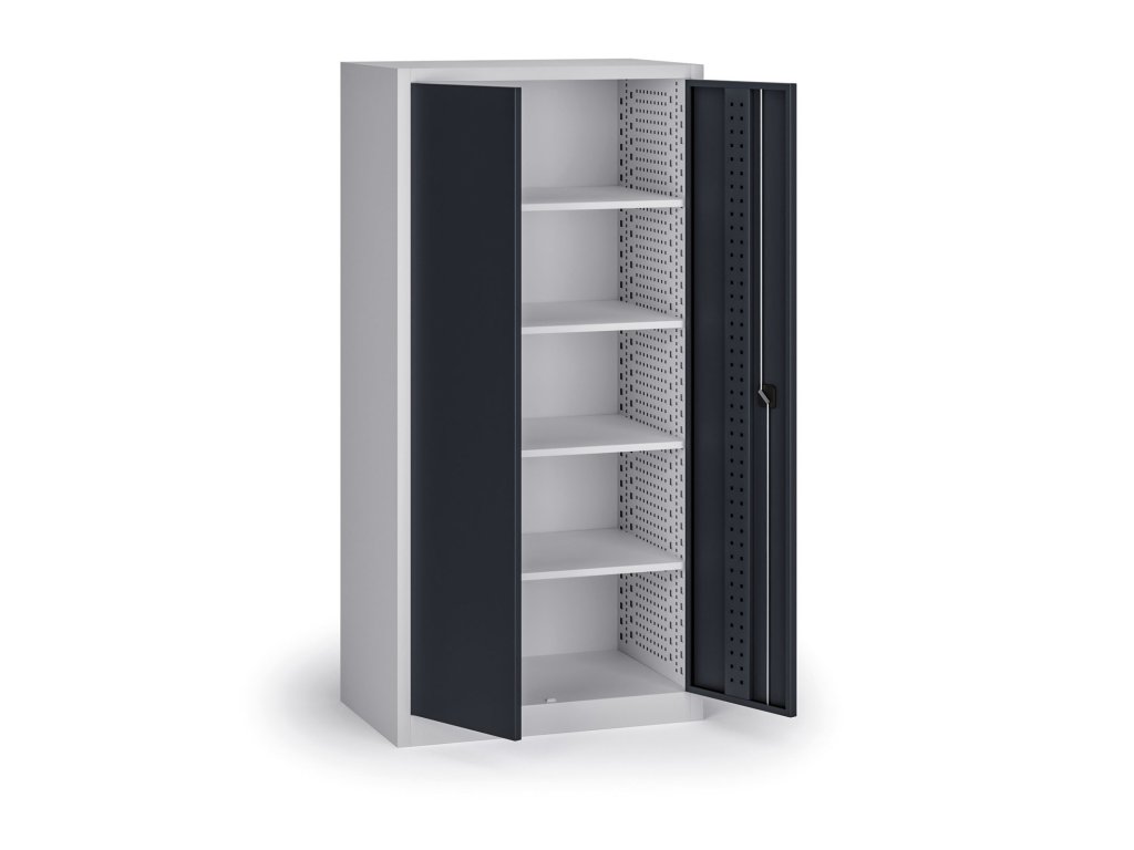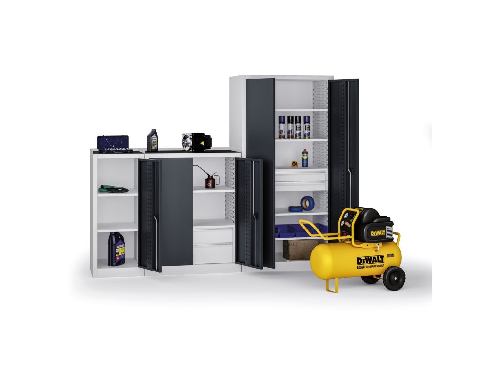 - Dveře s perforovanou výztuhou - Tloušťka plechu dveří 1mm, vnitřní perforace pro zavěšení držáků nářadí