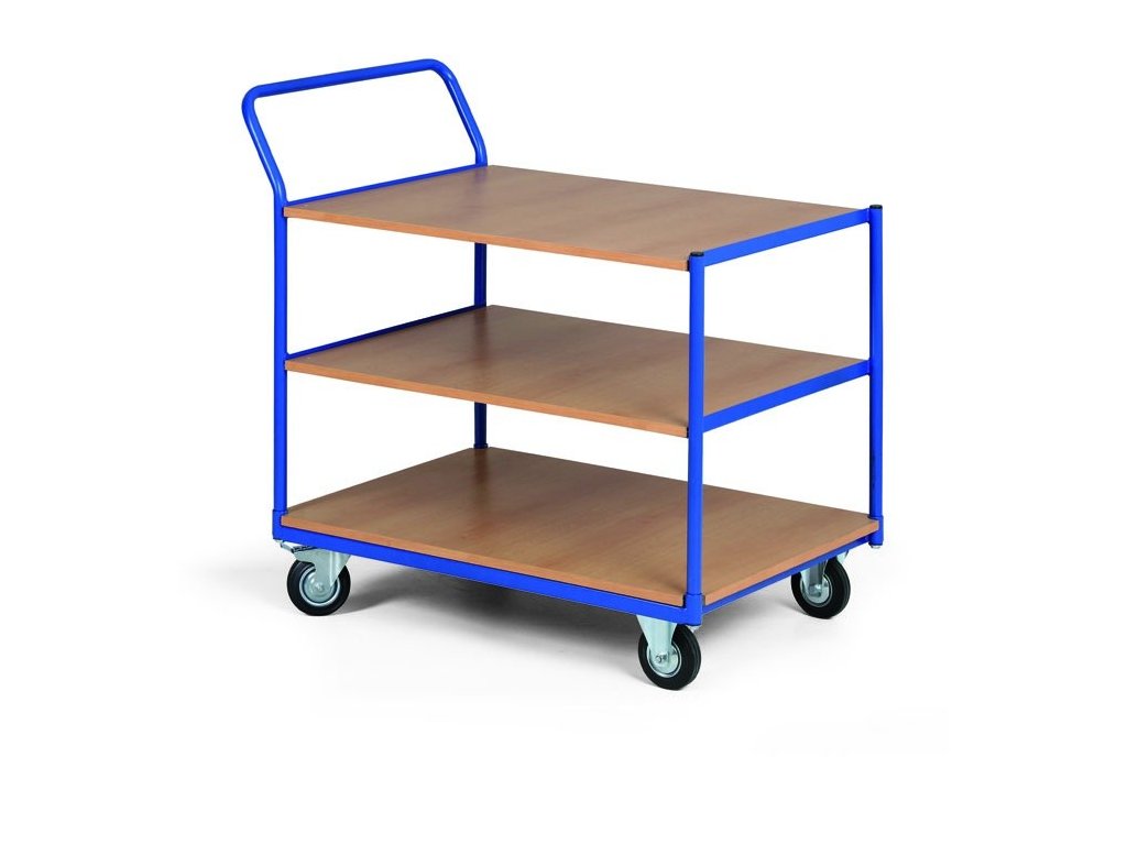Přepravní vozíky s odolnou ocelovou konstrukcí jsou určeny do dílen, skladů a podobných prostor. Jsou dodávány ve čtyřech variantách podle typu polic: