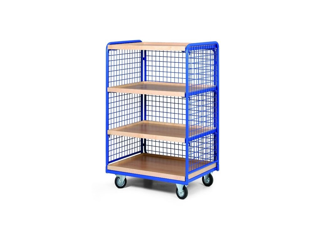 Policový vozík, 4 police s hranou, 3 bočnice s drátěnou výplní, nosnost 400 kg