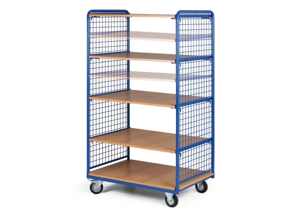 Přepravní vozíky jsou určeny do montážních dílen, skladů a podobných prostor. Konstrukce je svařena z ocelových profilů, kovové části jsou lakovány práškovým lakem RAL 5005. Tyto vozíky díky své robustní konstrukci ložné plochy a kvalitním kolům vyhovují nejnáročnějším podmínkám na provoz. Jsou dodávány ve variantách podle typu polic, typu madla a průměru použitých kol.