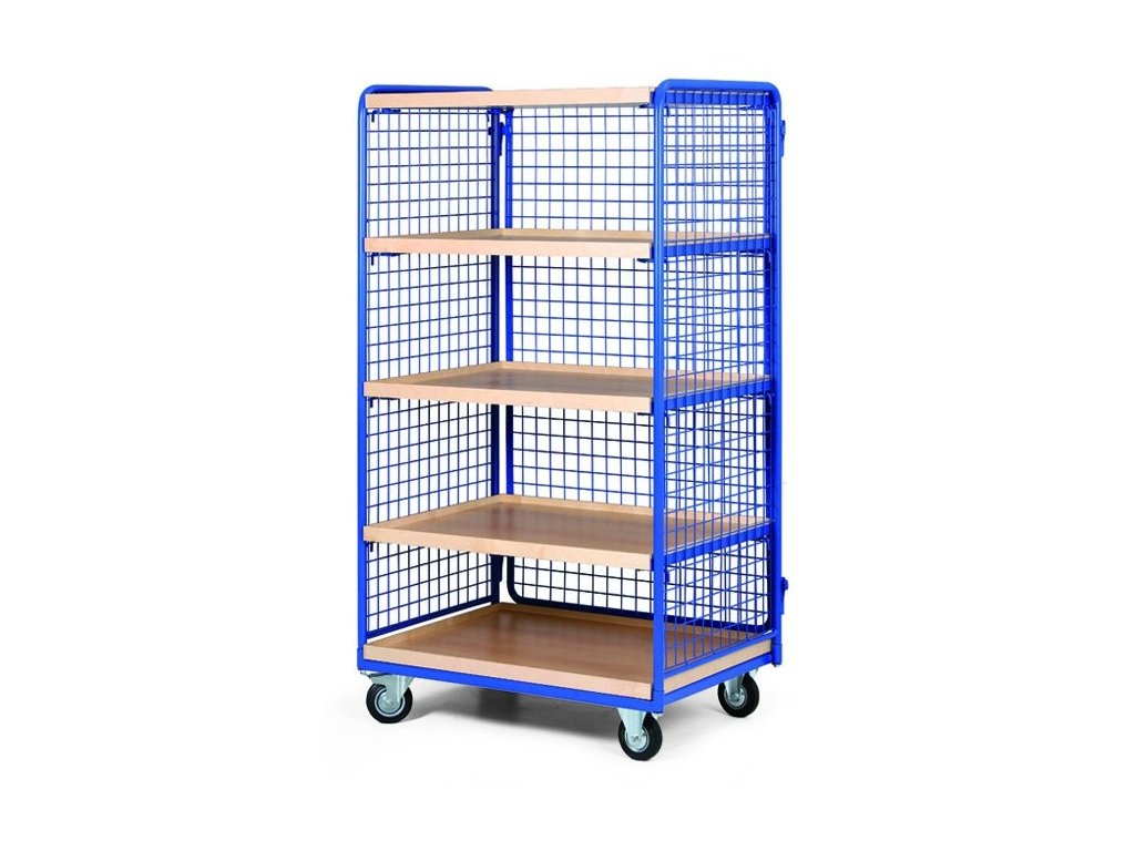 Policový vozík, 5 polic s hranou, 3 bočnice s drátěnou výplní, nosnost 400 kg