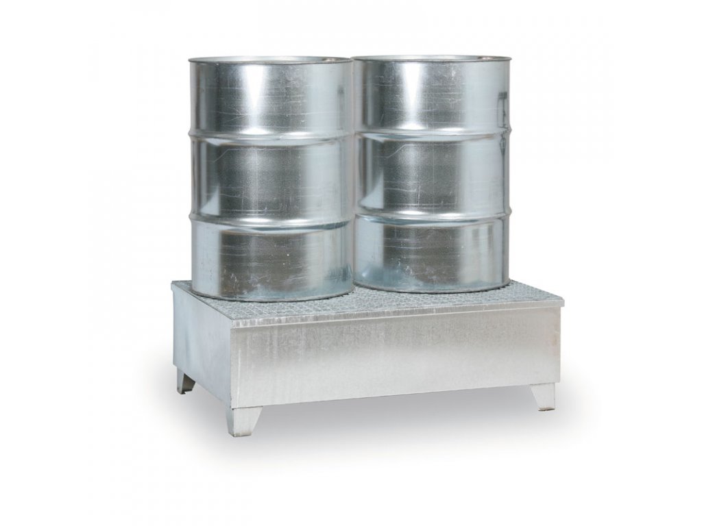 Pozinkovaná záchytná vana s roštem na nohách pro 2 sudy, objem 240 L