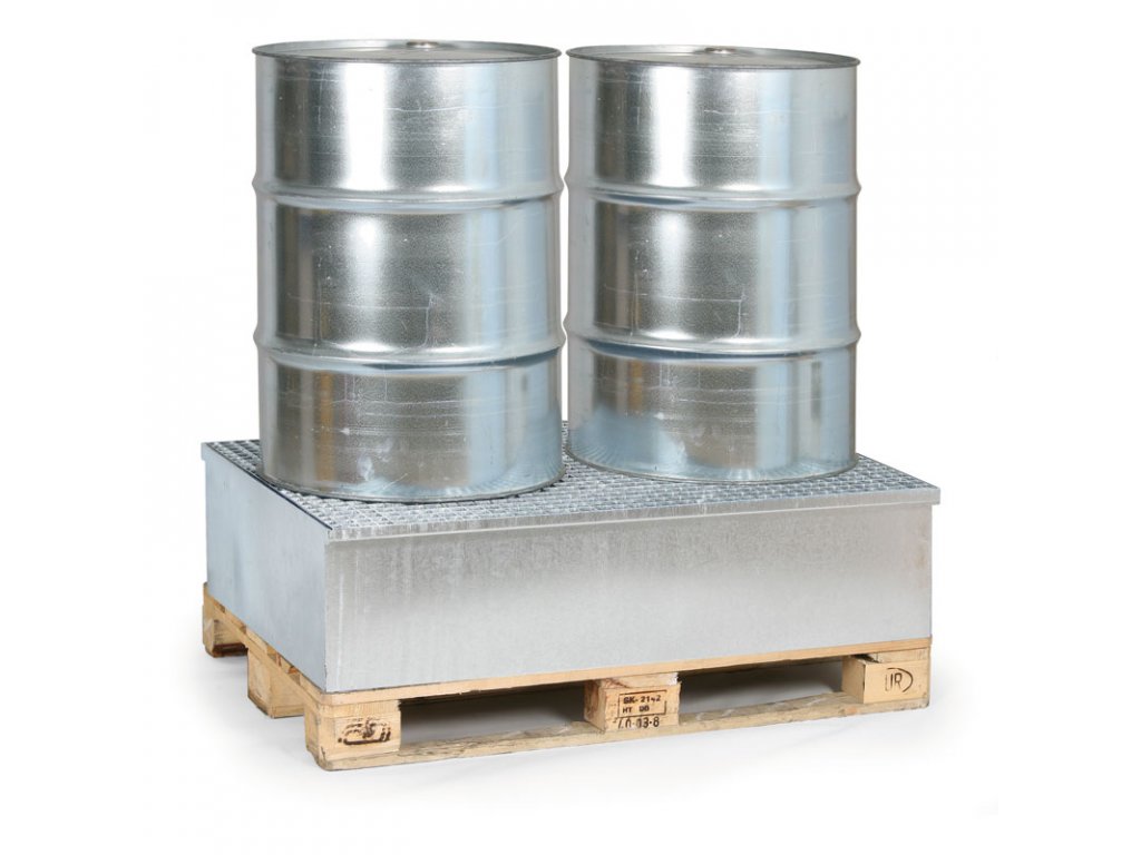 Pozinkovaná záchytná vana s roštem pro 2 sudy, objem 240 L