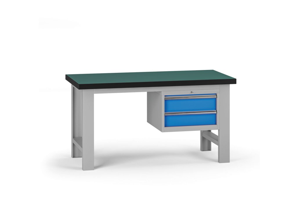 Pracovní stůl do dílny G8, 1500 x 750 x 800 mm, 1x kontejner, 2 zásuvky, modrá