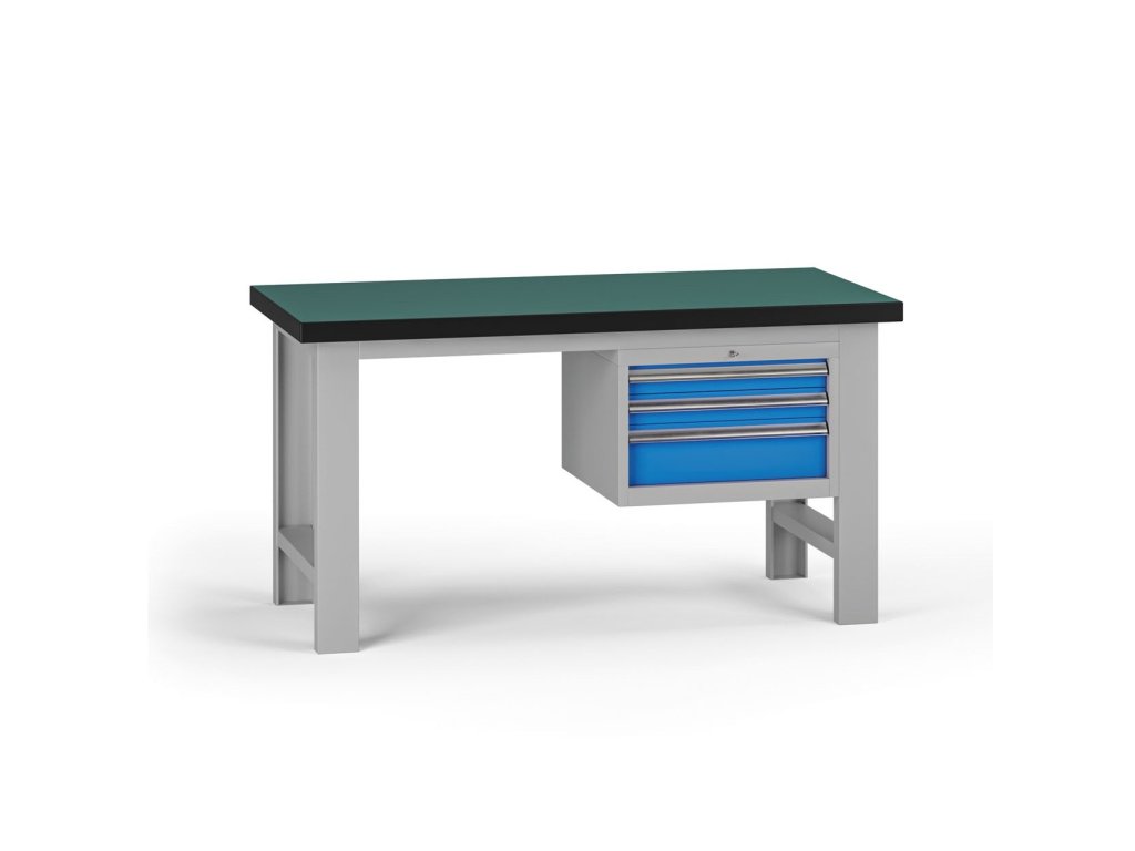 Pracovní stůl do dílny G8, 1500 x 750 x 800 mm, 1x kontejner, 3 zásuvky, modrá