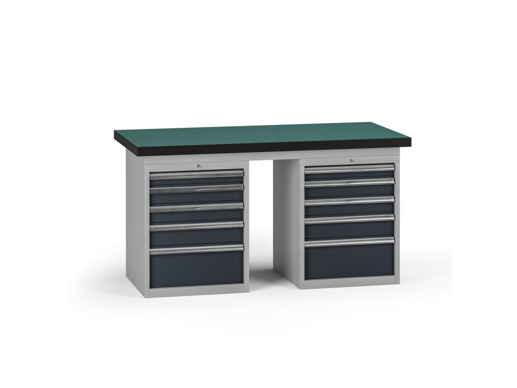 Pracovní stůl do dílny G8, 1500 x 750 x 800 mm, 2x kontejner, 10 zásuvek, grafit