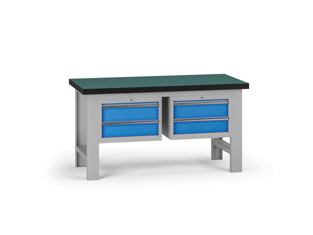 Pracovní stůl do dílny G8, 1500 x 750 x 800 mm, 2x kontejner, 4 zásuvky, modrá