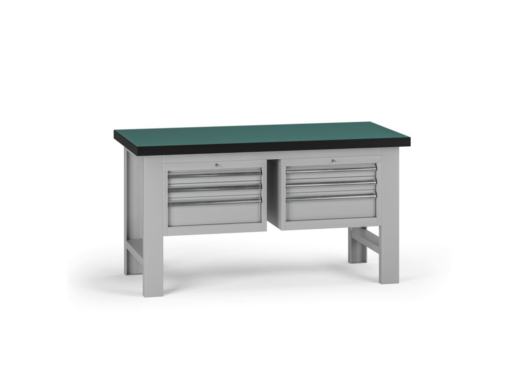 Pracovní stůl do dílny G8, 1500 x 750 x 800 mm, 2x kontejner, 6 zásuvek, šedá