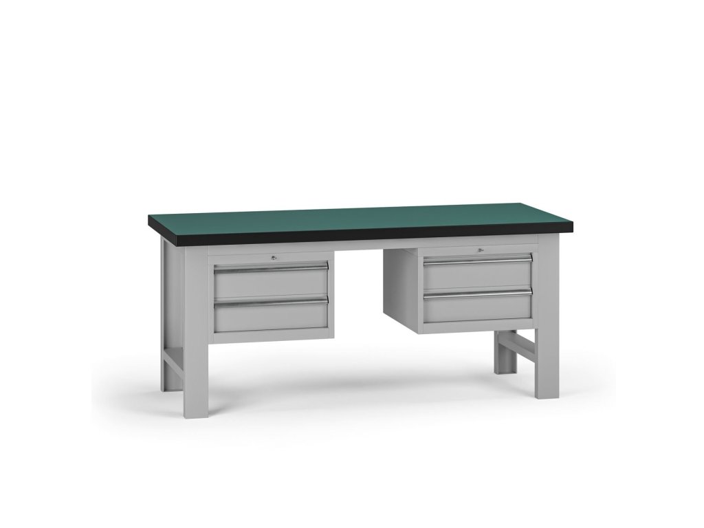 Pracovní stůl do dílny G8, 1800 x 750 x 800 mm, 2x kontejner, 4 zásuvky, šedá