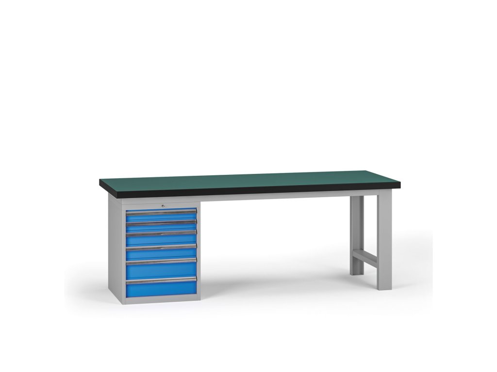 Pracovní stůl do dílny G8, 2100 x 750 x 800 mm, 1x kontejner, 6 zásuvek, modrá