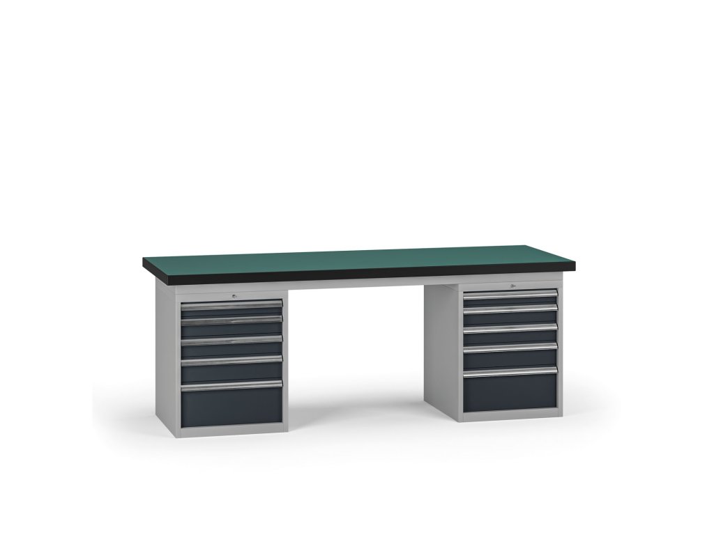 Pracovní stůl do dílny G8, 2100 x 750 x 800 mm, 2x kontejner, 10 zásuvek, grafit