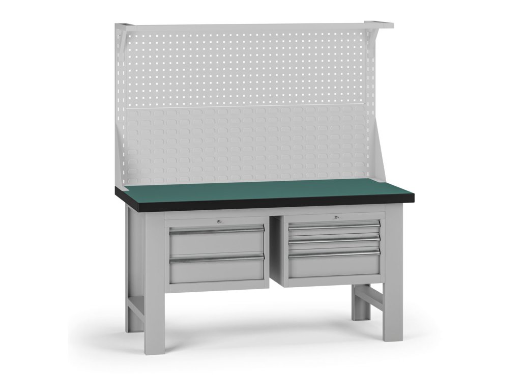 Pracovní stůl do dílny G8 s nástavbou, 1500 x 750 x 800 mm, 2x kontejner, 5 zásuvek, šedá