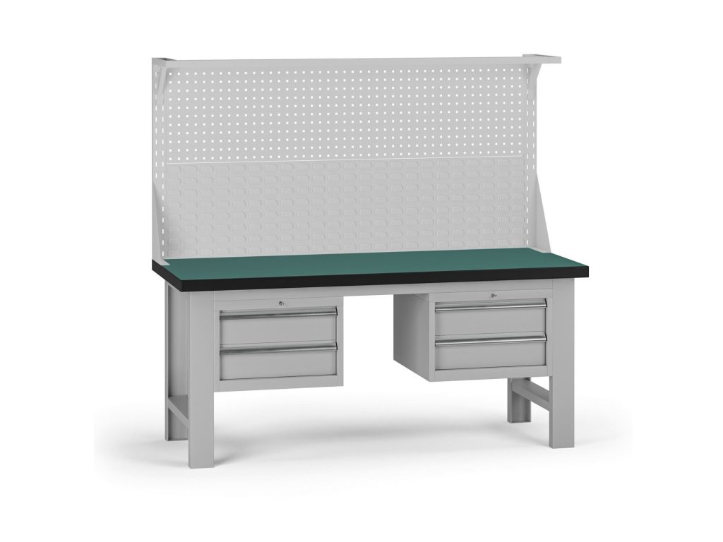 Pracovní stůl do dílny G8 s nástavbou, 1800 x 750 x 800 mm, 2x kontejner, 4 zásuvky, šedá