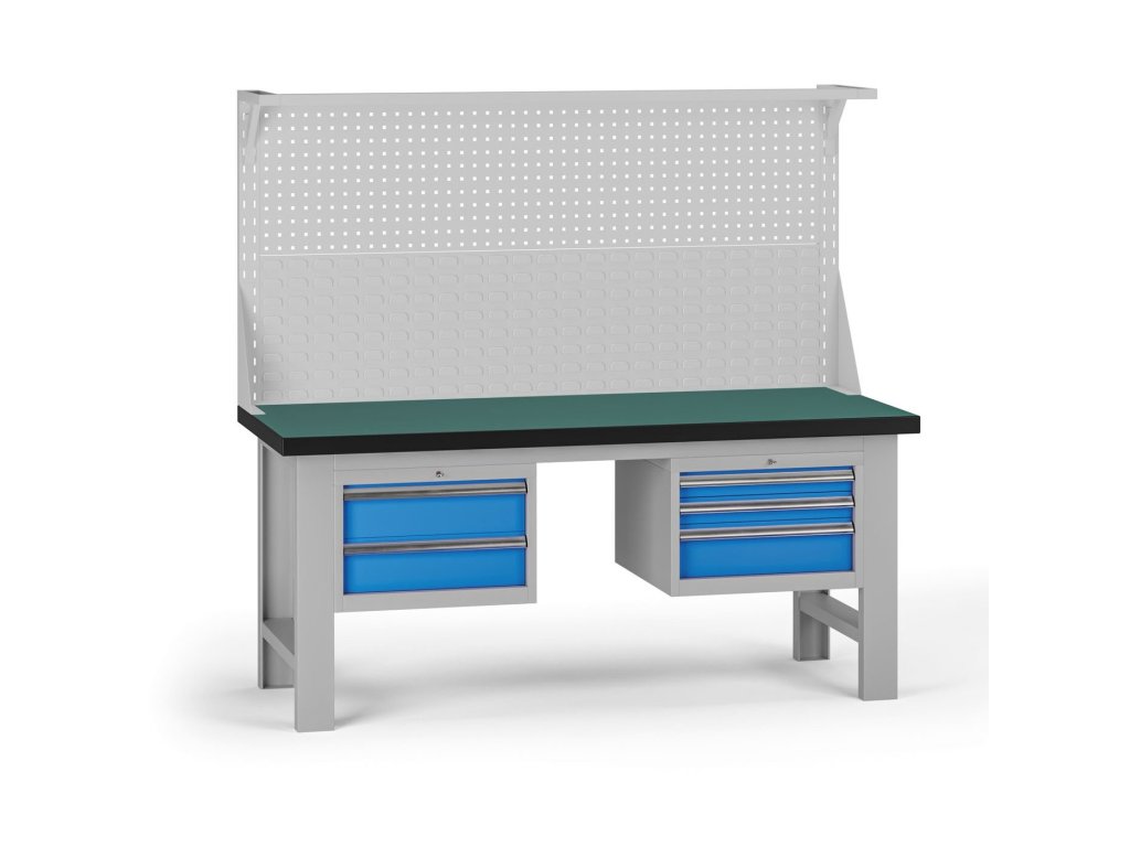 Pracovní stůl do dílny G8 s nástavbou, 1800 x 750 x 800 mm, 2x kontejner, 5 zásuvek, modrá