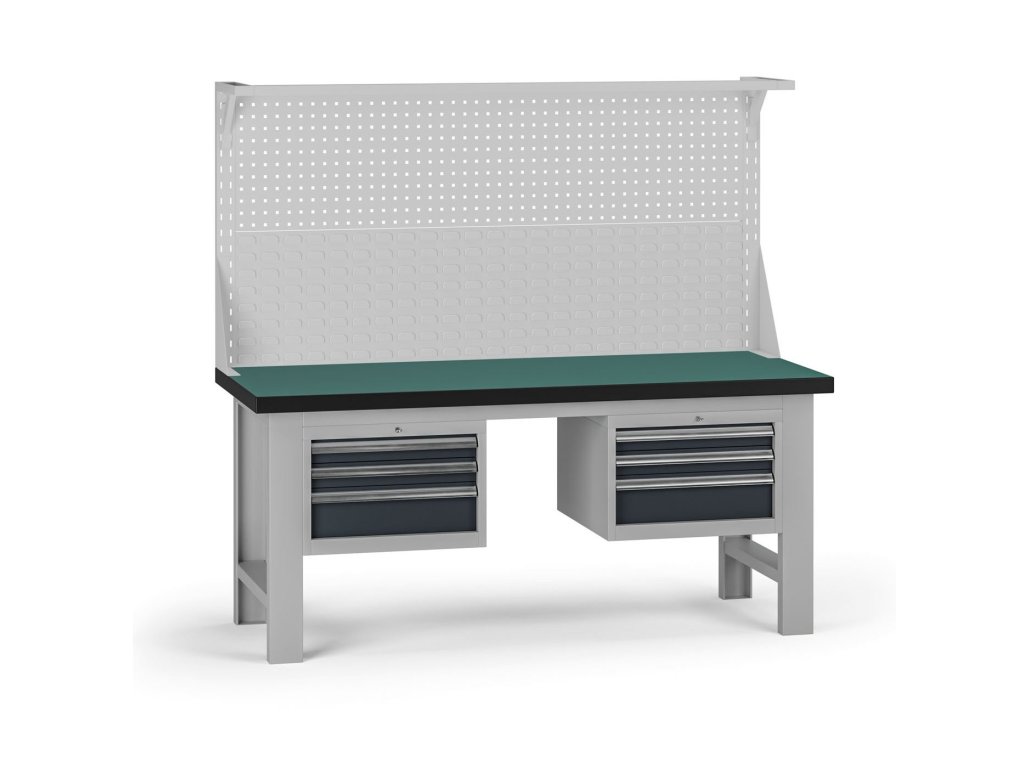 Pracovní stůl do dílny G8 s nástavbou, 1800 x 750 x 800 mm, 2x kontejner, 6 zásuvek, grafit