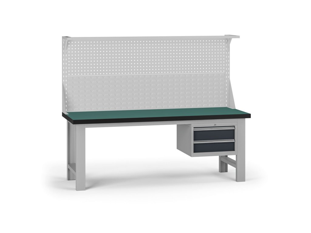Pracovní stůl do dílny G8 s nástavbou, 2100 x 750 x 800 mm, 1x kontejner, 2 zásuvky, grafit