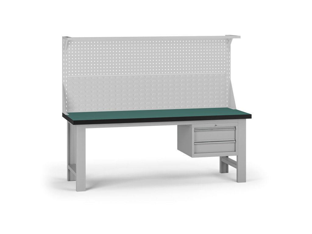 Pracovní stůl do dílny G8 s nástavbou, 2100 x 750 x 800 mm, 1x kontejner, 2 zásuvky, šedá