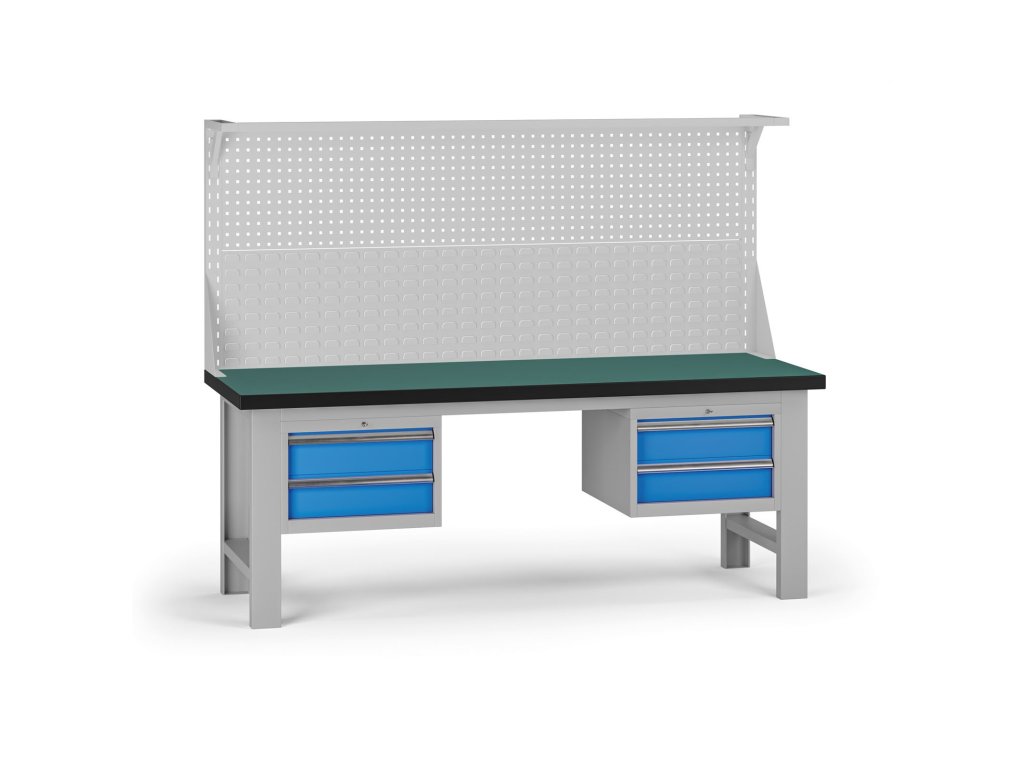 Pracovní stůl do dílny G8 s nástavbou, 2100 x 750 x 800 mm, 2x kontejner, 4 zásuvky, modrá