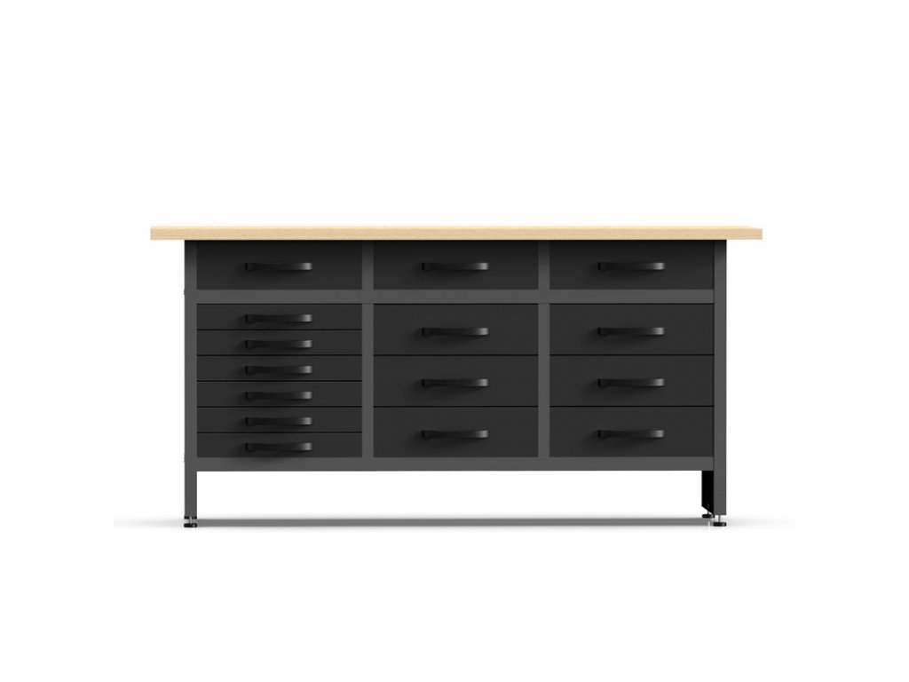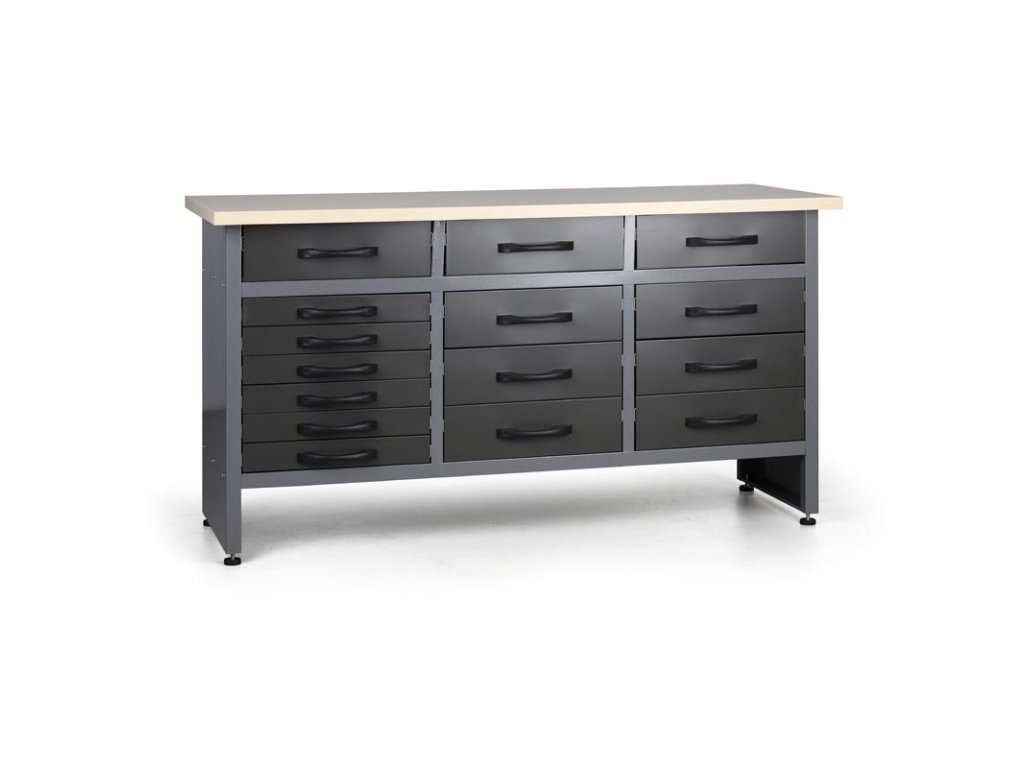 Pracovní stůl do dílny HOBBY III, 840 x 1600 x 600 mm, 15 zásuvek