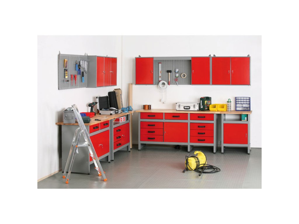 - zadní stěnu tvoří perforovaná deska, do které je možno upevnit háčky pro zavěšení nářadí