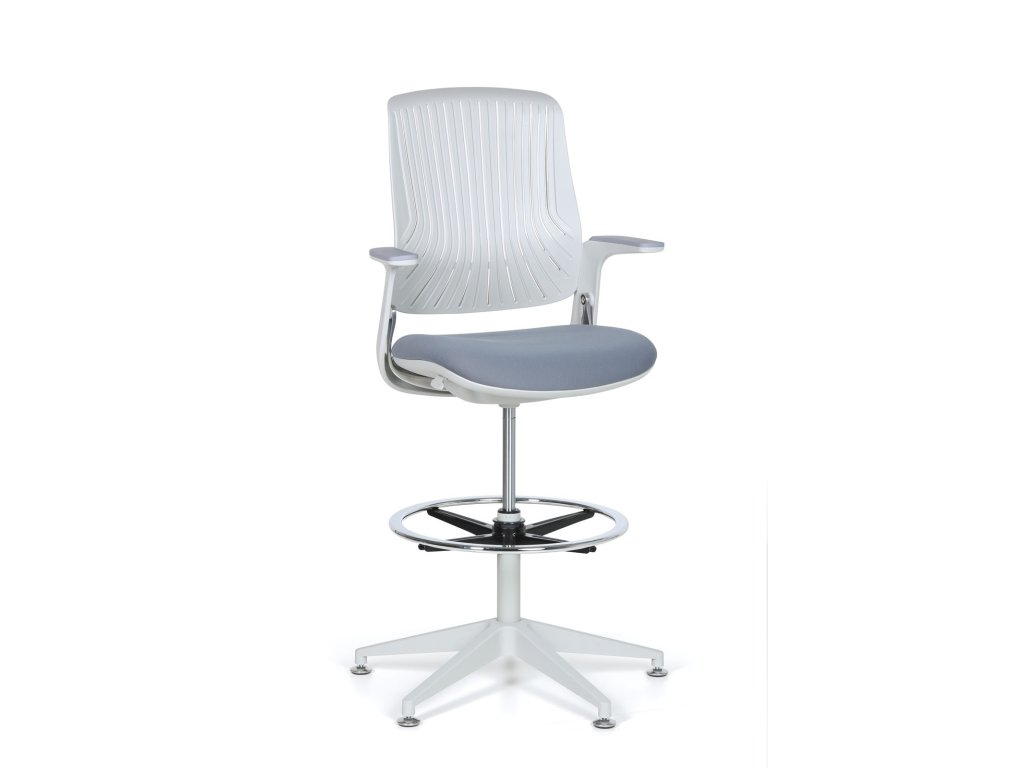Tato pracovní židle je vybavena opěrným kruhem, který slouží jako opora pro nohy u zvýšených pracovních židlí a stoliček a zajišťuje tak potřebný komfort i při dlouhodobém sezení.