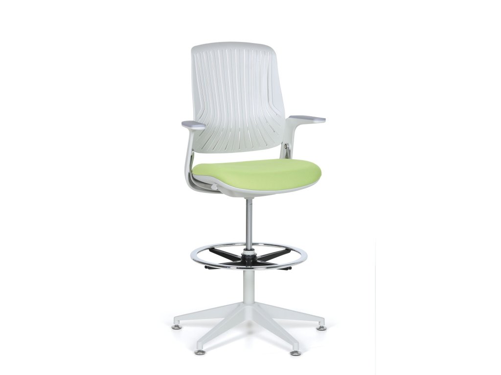 Tato pracovní židle je vybavena opěrným kruhem, který slouží jako opora pro nohy u zvýšených pracovních židlí a stoliček a zajišťuje tak potřebný komfort i při dlouhodobém sezení.