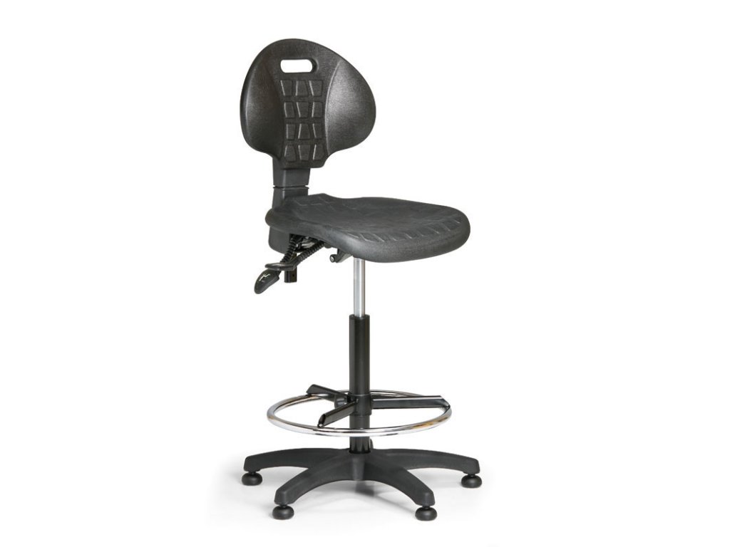 Tato pracovní židle je vybavena opěrným kruhem, který slouží jako opora pro nohy u zvýšených pracovních židlí a stoliček a zajišťuje tak potřebný komfort i při dlouhodobém sezení.