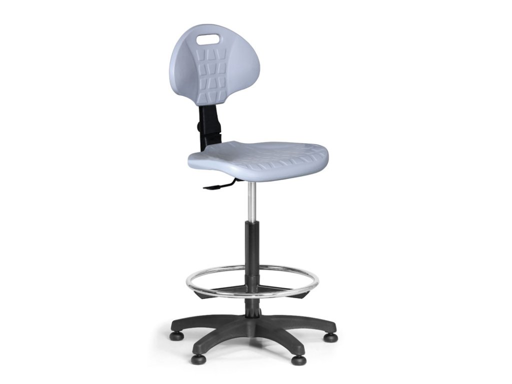 Tato pracovní židle je vybavena opěrným kruhem, který slouží jako opora pro nohy u zvýšených pracovních židlí a stoliček a zajišťuje tak potřebný komfort i při dlouhodobém sezení.