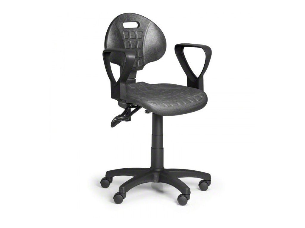 Pracovní židle PUR jsou vysoce odolné dílenské židle, jejichž dominantní prvek tvoří netoxický měkčený polyuretan. PUR materiál je nejen odolný vůči prachu, chemikáliím a dalším nečistotám, ale i mechanickému poškození v běžném provozu. Povrch židle lze navíc snadno udržovat běžnými dezinfekčními a čistícími prostředky.