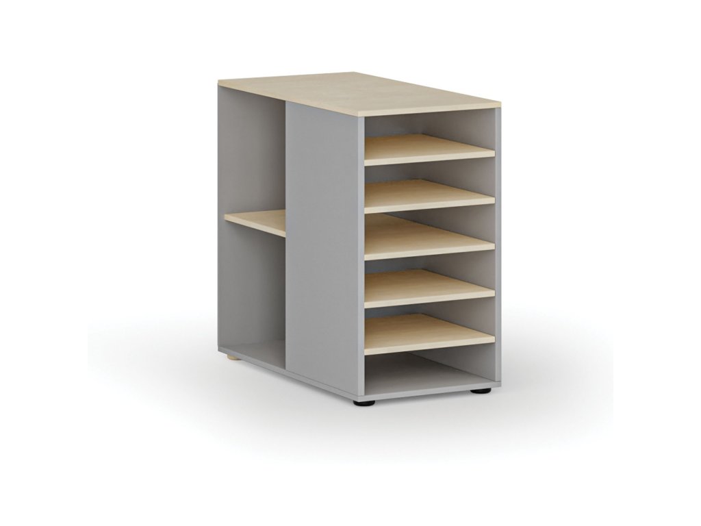 Přístavná policová skříňka k pracovnímu stolu PRIMO GRAY, levá, šedá/bříza