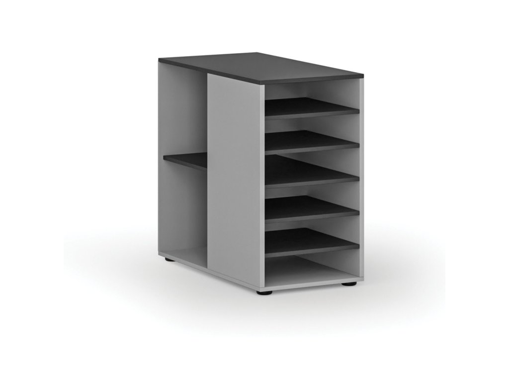 Přístavná policová skříňka k pracovnímu stolu PRIMO GRAY, levá, šedá/grafit