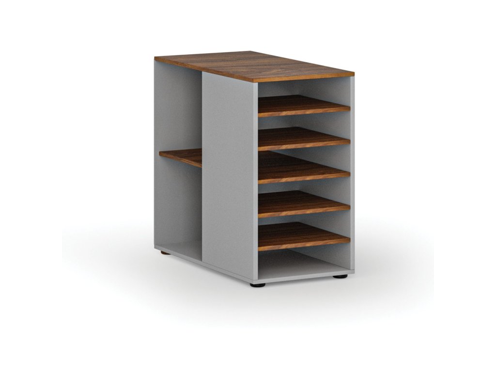 Přístavná policová skříňka k pracovnímu stolu PRIMO GRAY, levá, šedá/ořech