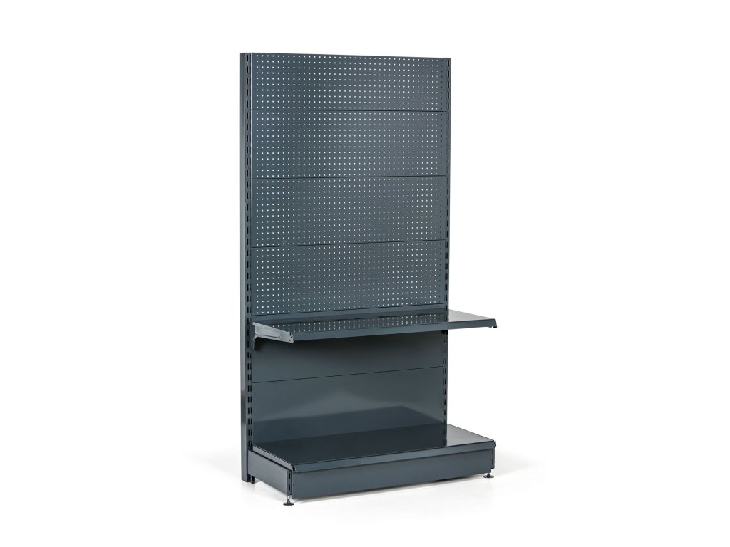 Prodejní regál jednostranný, perfo stěny, 2200 x 1000 x 450 mm, základní, antracit