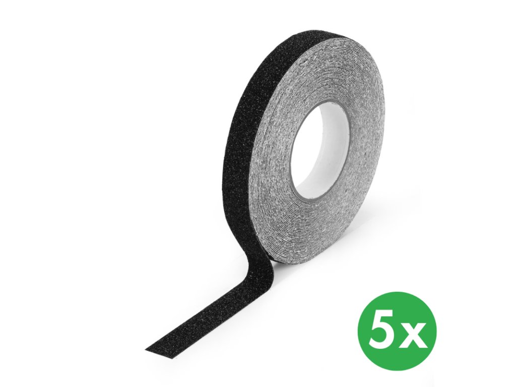 Protiskluzová páska, hrubé zrno, 25 mm x 18,3 m, balení 5 ks, černá