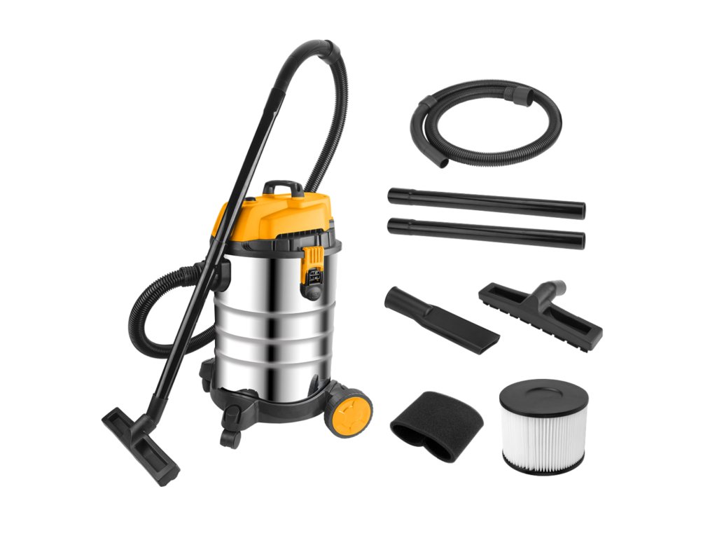 Praktický a výkonný průmyslový vysavač s objemem nádoby 30 litrů je vhodný pro vysávání suchých i mokrých nečistot. Díky odolné nerezové nádobě, výkonnému motoru a bohatému příslušenství je ideální volbou pro úklid dílen, garáží, technických místností i dalších náročnějších prostor.