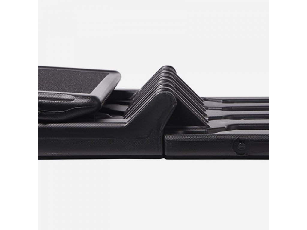 Po složení a zajištění pojistky se rampa promění v kompaktní „sendvič“, který lze snadno přenášet.