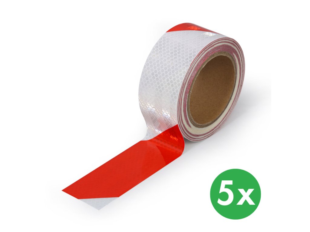 Reflexní výstražná páska 50 mm x 10 m, balení 5 ks, stříbrno-červená