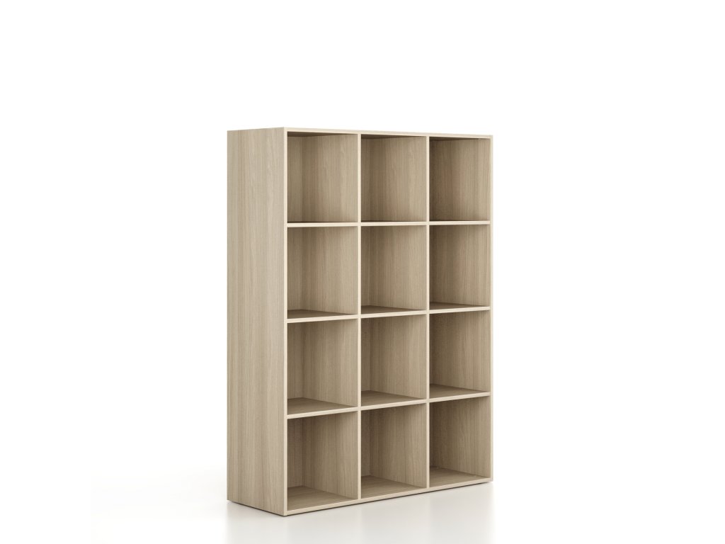 Široké skříně / Široké regály FRAME o výšce dřevěné části 1735 mm a šířce 1299 mm nabízejí 12 přehledně rozdělených boxů pro dokumenty, šanony i osobní věci. Police z laminované dřevotřísky o síle 18 mm s ABS hranou v barvě dezénu jsou pevně spojeny s korpusem, což zajišťuje vysokou stabilitu a dlouhou životnost i při každodenním používání. Každá police unese až 30 kg při rovnoměrném zatížení a vnitřní rozměr jednoho boxu činí 409 × 409 mm.
