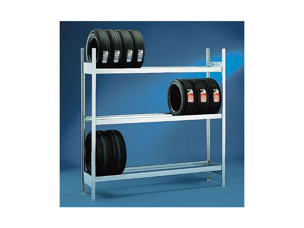 - regál navržený speciálně pro skladování běžných rozměrů pneumatik pro osobní automobily