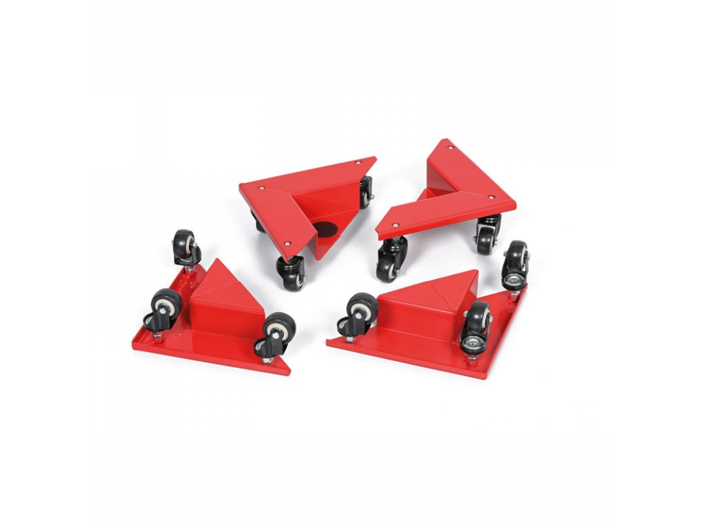 - sada čtyř rohových stěhovacích plošin, ideální pro snadný přesun menších či větších břemen ve skladech, dílnách nebo průmyslových provozech