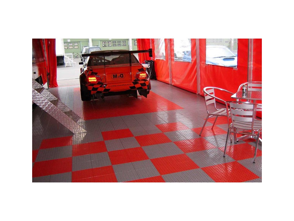 Elementárním prvkem systému je deska 250x250mm. Provedení povrchu všech dílů je protiskluzové, v povrchu jsou otvory o průměru 12mm, výška desek je 16mm. Vytvoření nájezdových hran se řeší pomocí rovného a rohového nájezdu. Jednotlivé díly systému se spojují plastovými spojkami, které jsou v příslušném počtu u každého modulu zahrnuty v ceně. Podlahový systém je možno vrstvit na sebe a tím vytvářet nájezdové rampy různé výšky i délky.