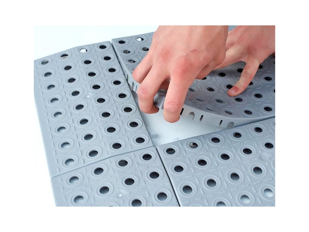 Elementárním prvkem systému je deska 250x250mm. Provedení povrchu všech dílů je protiskluzové, v povrchu jsou otvory o průměru 12mm, výška desek je 16mm. Vytvoření nájezdových hran se řeší pomocí rovného a rohového nájezdu. Jednotlivé díly systému se spojují plastovými spojkami, které jsou v příslušném počtu u každého modulu zahrnuty v ceně. Podlahový systém je možno vrstvit na sebe a tím vytvářet nájezdové rampy různé výšky i délky.