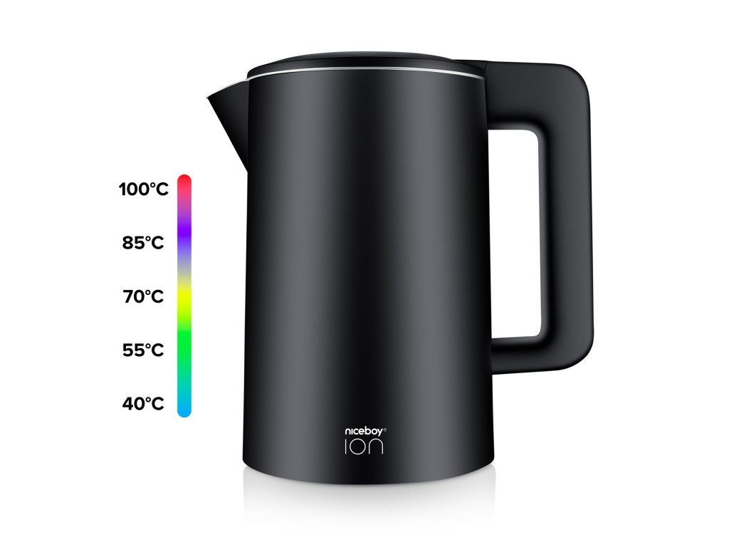 Niceboy ION ThermoKettle TK5 je elegantní rychlovarná konvice s možností nastavení teploty vody. S výkonem 2200 W a kapacitou 1,7 litru uvaří během okamžiku dostatek horké vody pro celou rodinu nebo návštěvu. Konvice také nabízí funkci udržení teploty po dobu 6 hodin. Bezstarostné používání garantují bezpečnostní prvky, jako je dvojitá stěna s technologií TOUCH Guard nebo automatické vypnutí při dosažení bodu varu.